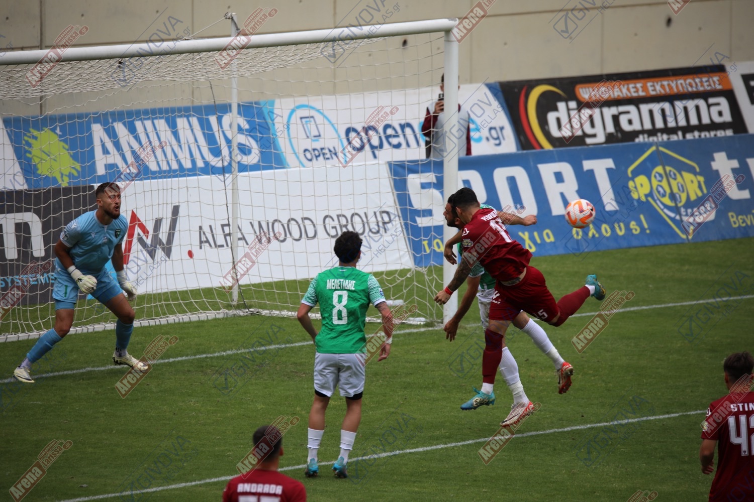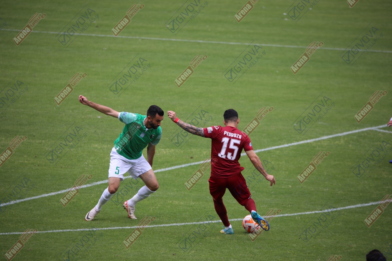 Ενώ και στο 15′ ο Αλβανός γκολκίπερ απέκρουσε δυνατό σουτ με αξιώσεις του Πεντρόζο μέσα από την περιοχή, κρατώντας και σε αυτήν την στιγμή το μηδέν στην εστία του Μακεδονικού. Ενώ και στο 25′ οι «βυσσινί» απείλησαν αυτήν την φορά με τον Πεντρόζο δημιουργό. Ο Αργεντινός μπήκε στη περιοχή του Μακεδονικού από δεξιά και γύρισε στο ύψος της μεγάλης περιοχής στο Στίνα που σούταρε στην αριστερή γωνιά του Περντρέου που έδιωξε και πάλι.