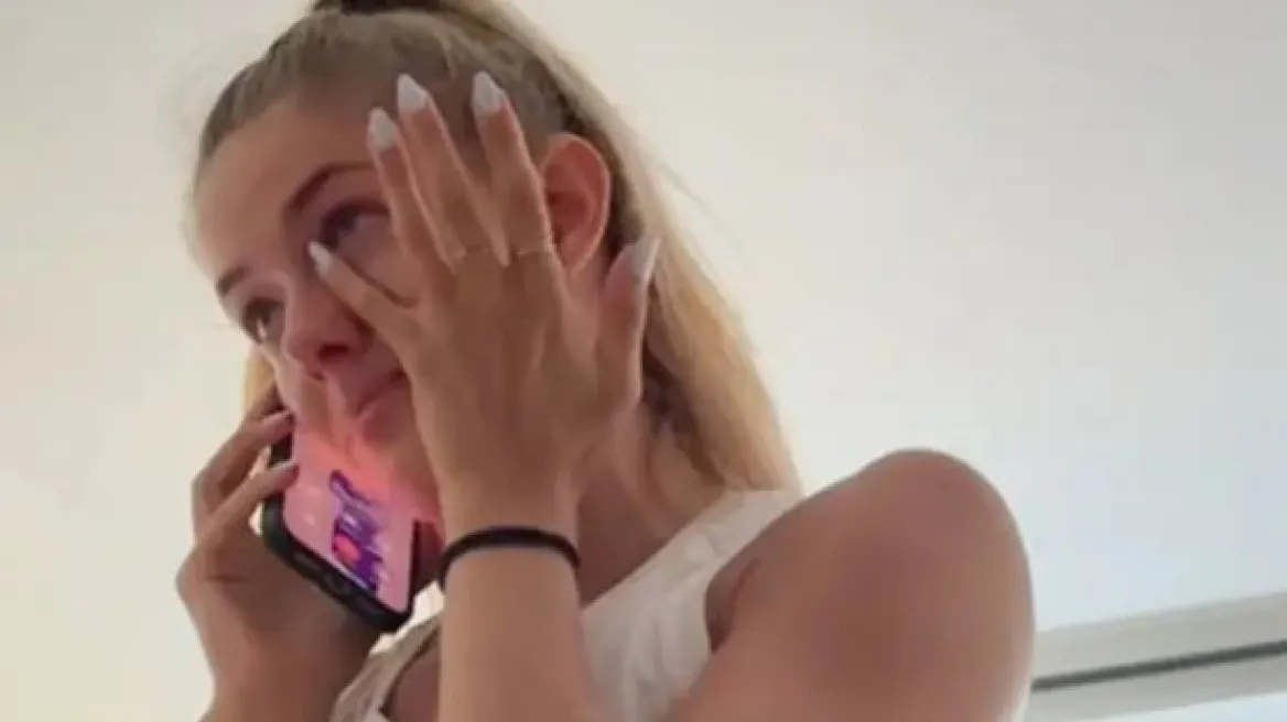 Στο βίντεο φαίνεται η Σμιντ να σκουπίζει τα δάκρυα από τα μάτια της, ενώ μιλάει στο τηλέφωνο.