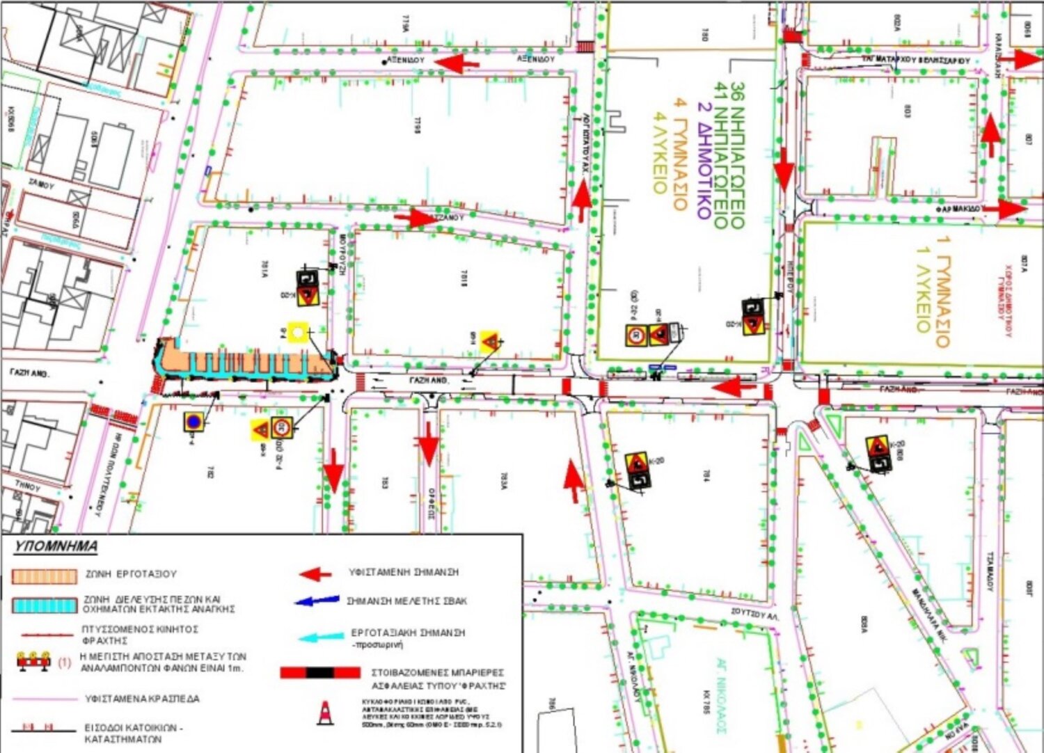 Κατά τη διάρκεια των εργασιών στην οδό Ανθίμου Γαζή, η κυκλοφορία των οχημάτων θα διεξάγεται σύμφωνα με τις προβλεπόμενες πληροφοριακές και ρυθμιστικές πινακίδες που θα τοποθετηθούν από τον ανάδοχο του έργου.