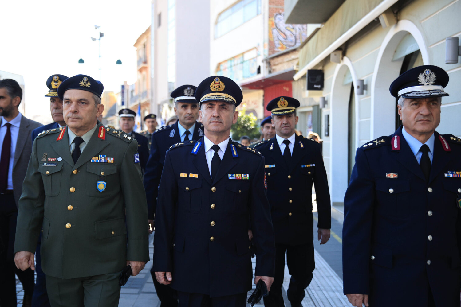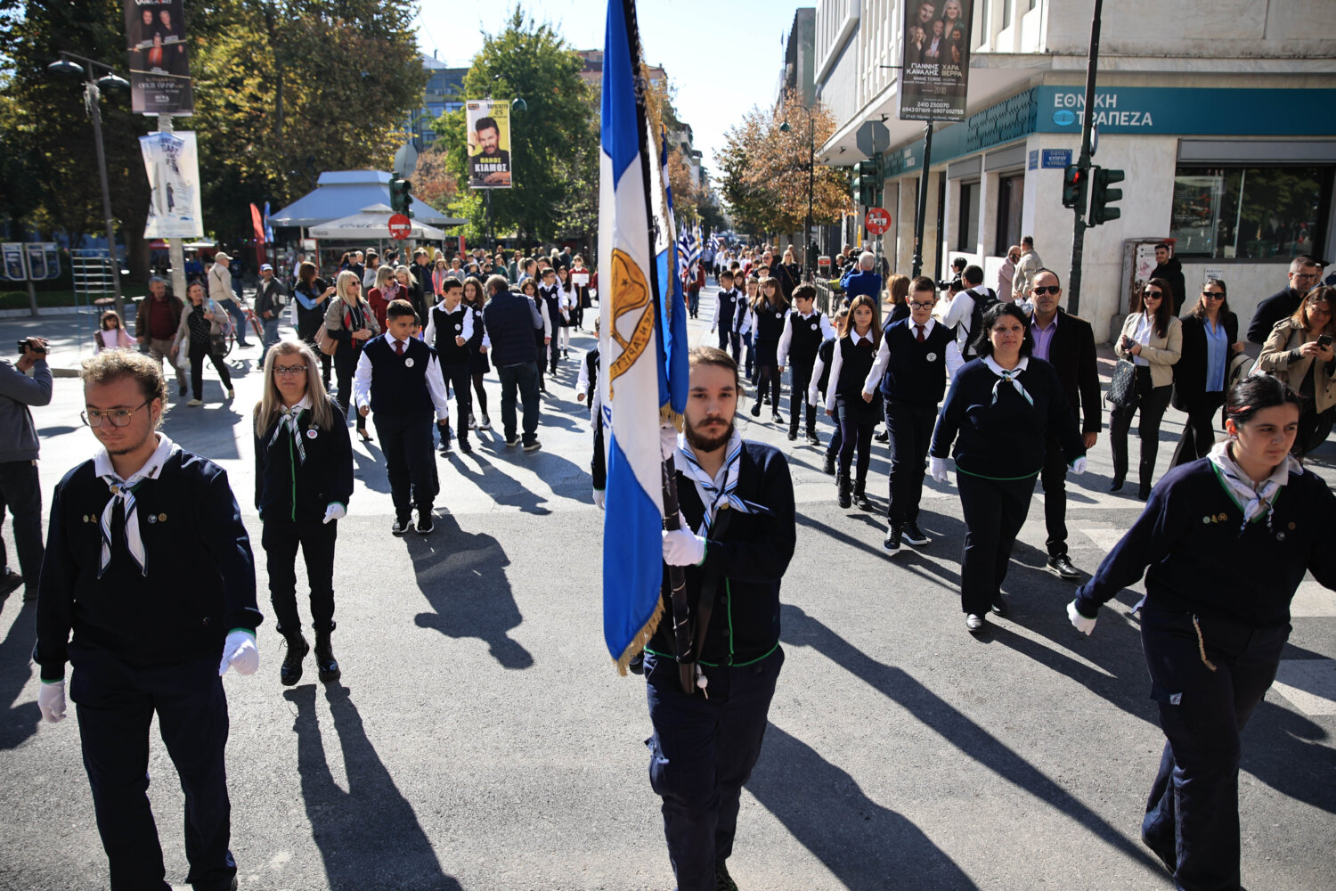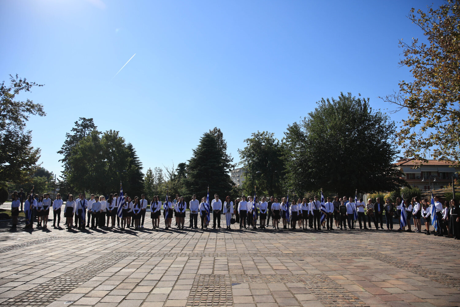 Πιο αναλυτικά το πρωί της Τετάρτη συγκεντρώθηκαν στο Δημαρχείο της πόλης, φορείς, μαθητές, αλλά και πολίτες, από όπου με τη Φιλαρμονική του Δήμου να προηγείται μετακινήθηκαν προς το Ηρώο της πόλης.