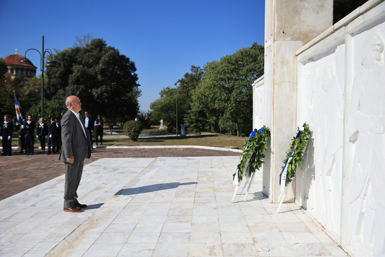 Στη συνέχεια τελέστηκε επιμνημόσυνη δέηση, ενώ ακολούθησε ομιλία από την Πρόεδρο του Δημοτικού Συμβουλίου, Γαρυφαλλιά Καρυστιανού-Γκολφινοπούλου και ακολούθησε η κατάθεση στεφάνων. Οι εκδηλώσεις ολοκληρώθηκαν με την τήρηση ενός λεπτού σιγής και την ανάκρουση του Εθνικού Ύμνου.