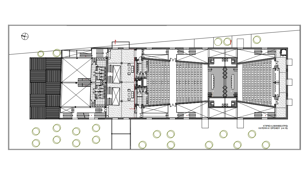 - Χώροι κυλικείου για την εξυπηρέτηση των δύο φουαγιέ των αμφιθεάτρων (χωριστή εξυπηρέτηση)