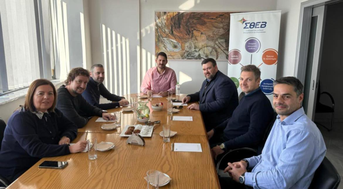Τα γραφεία του Συνδέσμου Θεσσαλικών Βιομηχανιών και Επιχειρήσεων επισκέφτηκε ο υποψήφιος πρόεδρος του Επιμελητηρίου Λάρισας και επικεφαλής της «ΕΠΑΝΕΚΚΙΝΗΣΗΣ» κ. Δημήτρης Παπαλέξης, όπου συναντήθηκε με τον Πρόεδρο του ΣΘΕΒ κ. Γιώργο Ρουπακιά, τον Αντιπρόεδρο κ. Γιώργο Καρκανιά και την Γενική Διευθύντρια κ. Έλενα Καματέρη.
