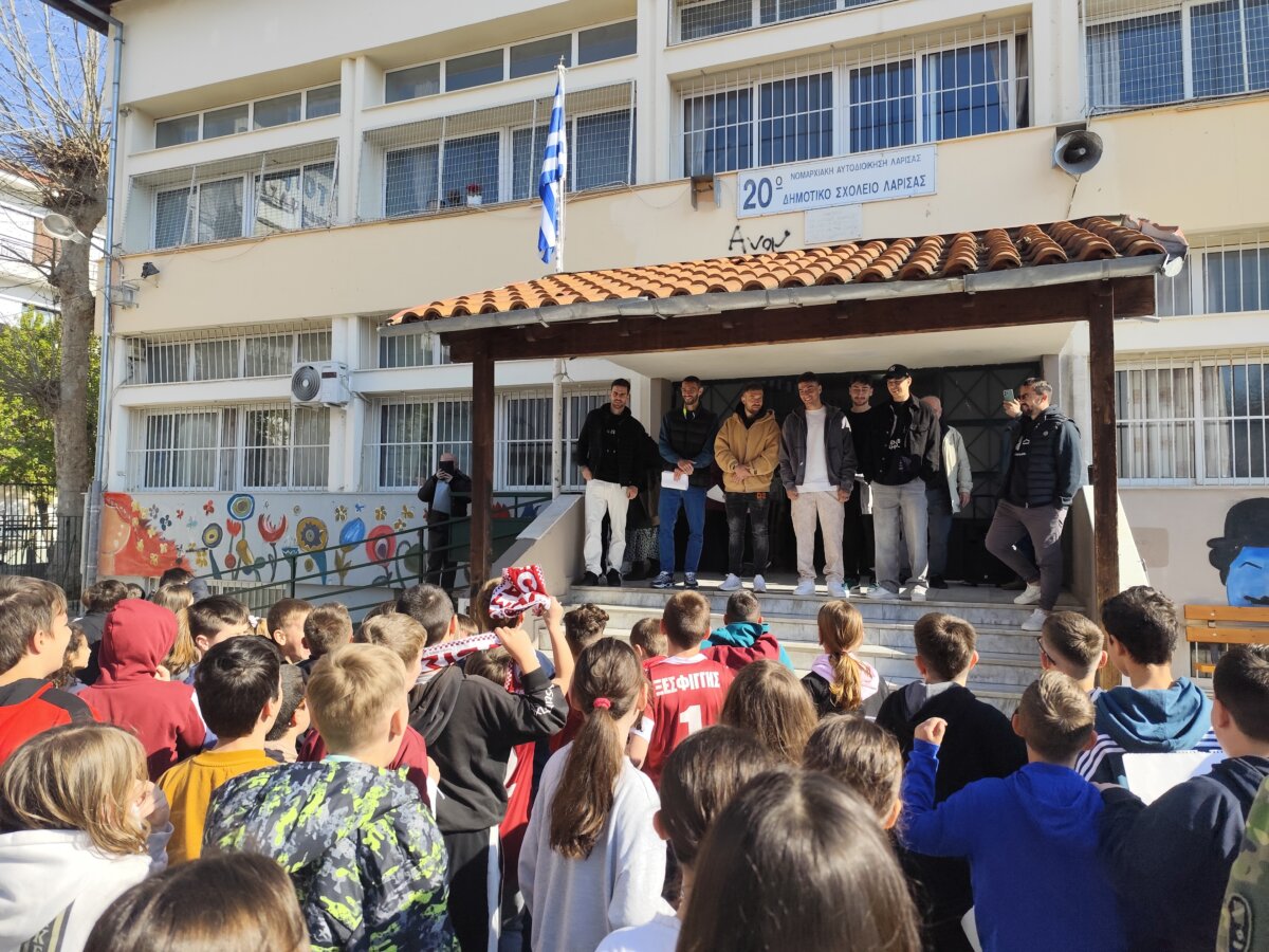 Αντιπροσωπεία ποδοσφαιριστών και στελεχών της ΠΑΕ ΑΕΛ βρέθηκε σήμερα στο 20ο Δημοτικό Σχολείο Λάρισας ανταποκρινόμενη σε πρόσκληση της διεύθυνσης με ειδικότερο σκοπό να γίνει ομιλία στα παιδιά της Α’ τάξης σχετικά με την σωστή και υγιεινή διατροφή.