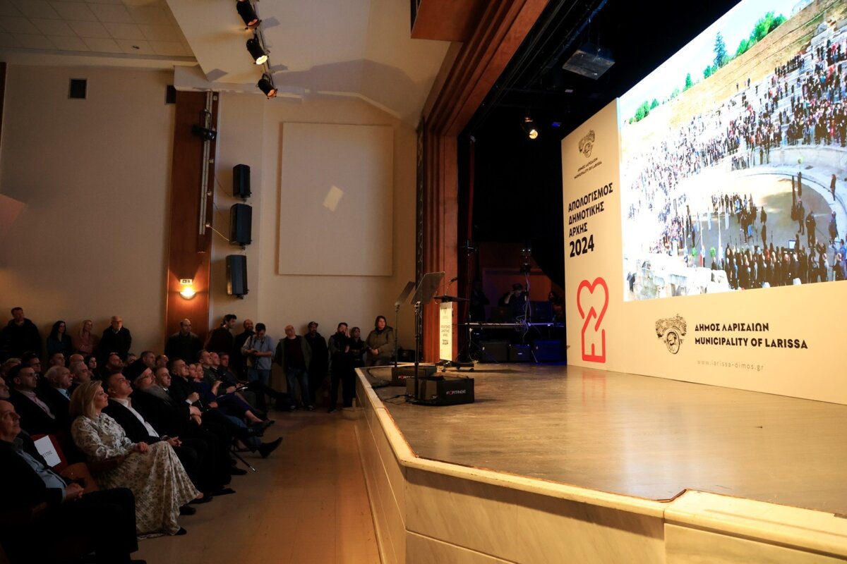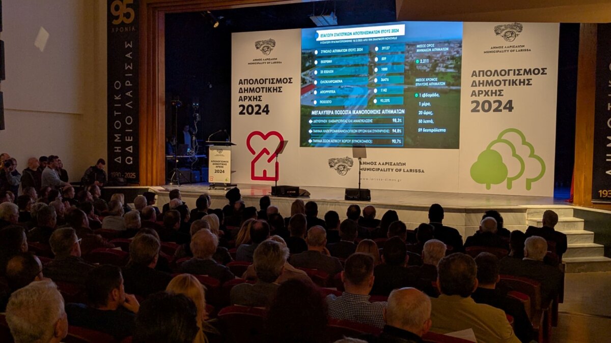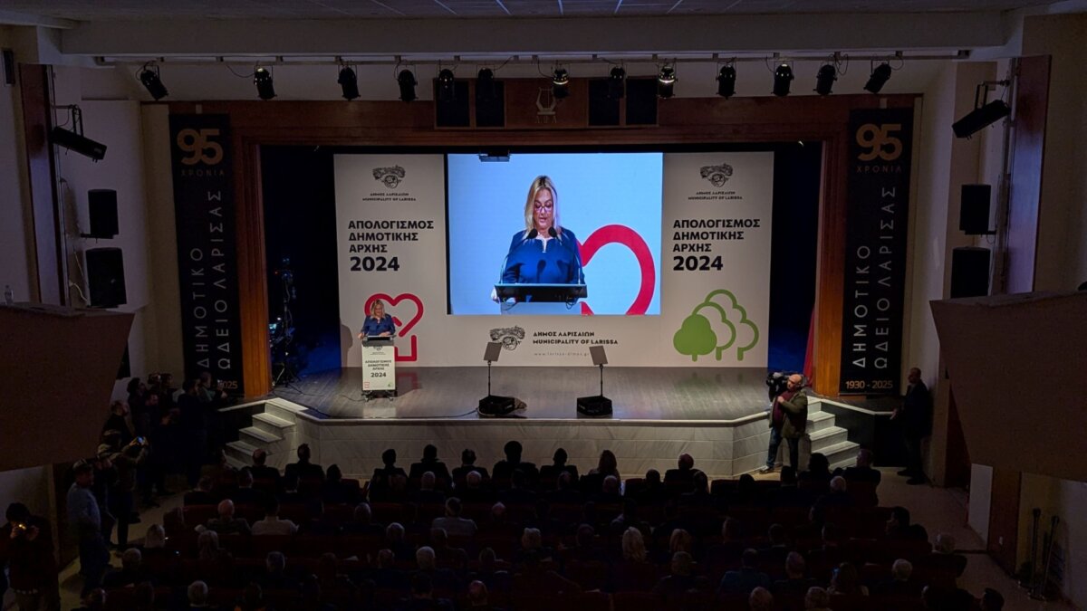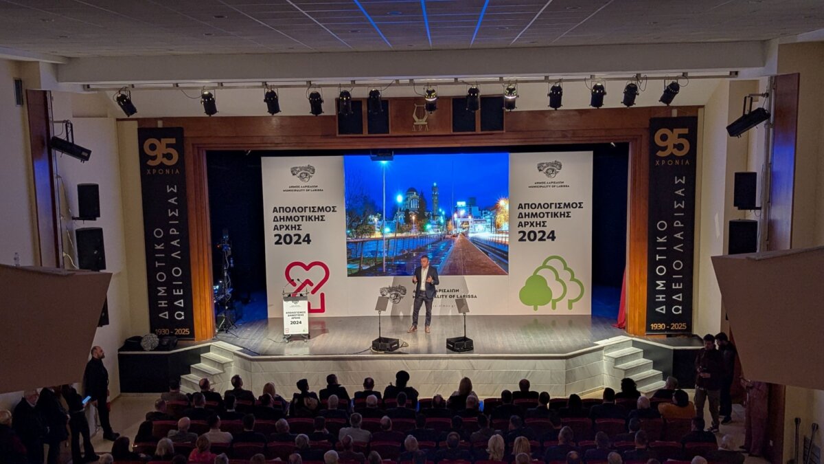Στην κατάμεστη αίθουσα εκδηλώσεων του Δημοτικού Ωδείου Λάρισας, παρουσία πλήθους κόσμου και εκπροσώπων των αρχών, φορέων και συλλόγων, η Δημοτική Αρχή παρουσίασε τα έργα και τις παρεμβάσεις που πραγματοποιήθηκαν κατά τη διάρκεια της χρονιάς που πέρασε – έργα και παρεμβάσεις που ξεπερνούν τις 100, μέσα σε μόλις έναν χρόνο, στο τιμόνι του Δήμου Λαρισαίων.
