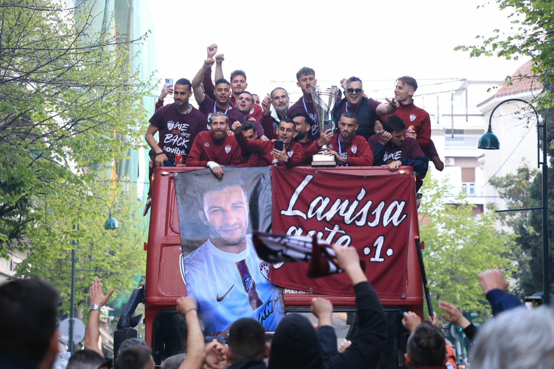 Απίστευτες στιγμές στο κέντρο της πόλης μόλις έφτασε το πούλμαν με τους παίκτες της ΑΕΛ. Χιλιάδες Λαρισαίοι αποθέωσαν τους “βυσσινί” που καταγράφουν με τα κινητά τους τις ανεπανάληπτες στιγμές που ζουν