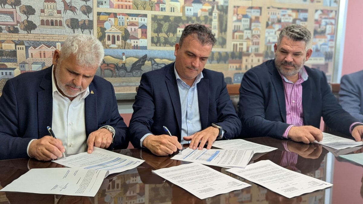 Τη σύμβαση για το έργο «Αποκατάσταση της Εγκατάστασης Επεξεργασίας Λυμάτων Λάρισας μετά την κακοκαιρία Daniel με λειτουργία και συντήρηση» υπέγραψαν εκ μέρους της ΔΕΥΑΛ ο Δήμαρχος Λαρισαίων και πρόεδρος της Δημοτικής Επιχείρησης Ύδρευσης-Αποχέτευσης Λάρισας, κ. Θανάσης Μαμάκος και ο εκπρόσωπος της κοινοπραξίας «Καρκανιάς – Tedra – Daniel», πρόεδρος και διευθύνων σύμβουλος της Tedra, κ.Ιωάννης Τόλιος, παρουσία του Αντιπροέδρου της ΔΕΥΑΛ, κ.Κωνσταντίνου Αργυρόπουλου, του Γενικού Διευθυντή, κ. Δημήτρη Σαββοργινάκη και του προέδρου της «Καρκανιάς Τεχνολογίες Περιβάλλοντος», κ. Γιώργου Καρκανιά.