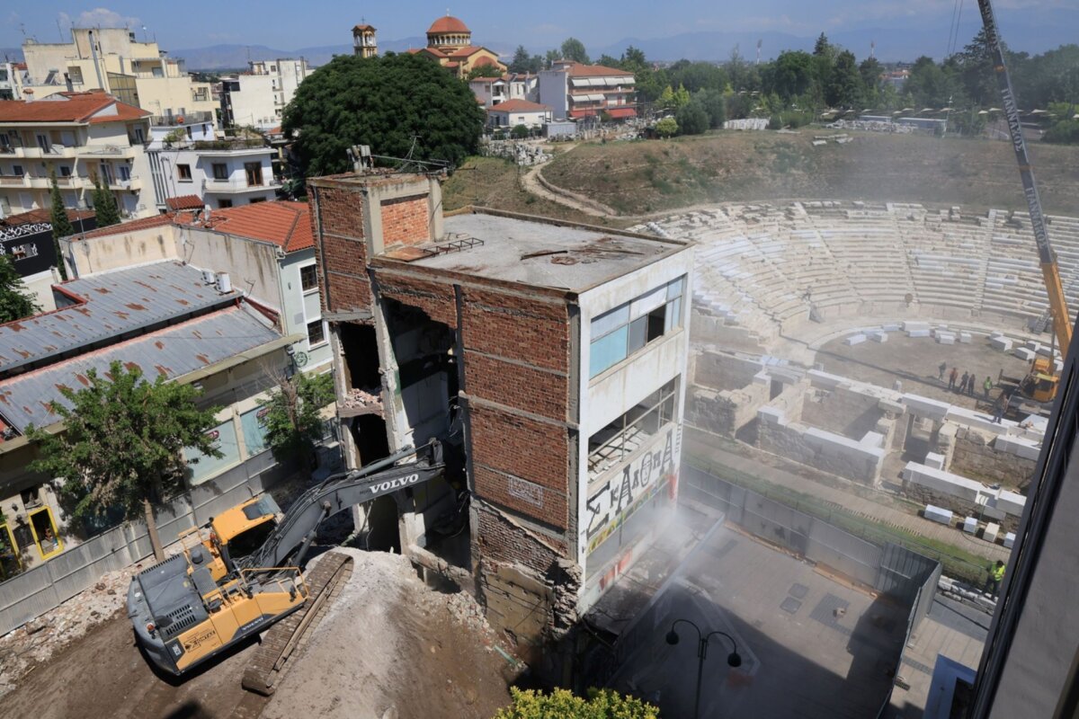 Δήμος Λαρισαίων: Συνεχίζονται οι εργασίες κατεδάφισης μπροστά από το Αρχαίο Θέατρο – «Παρελθόν» τμήμα του πολυωρόφου κτιρίου στη Βενιζέλου
