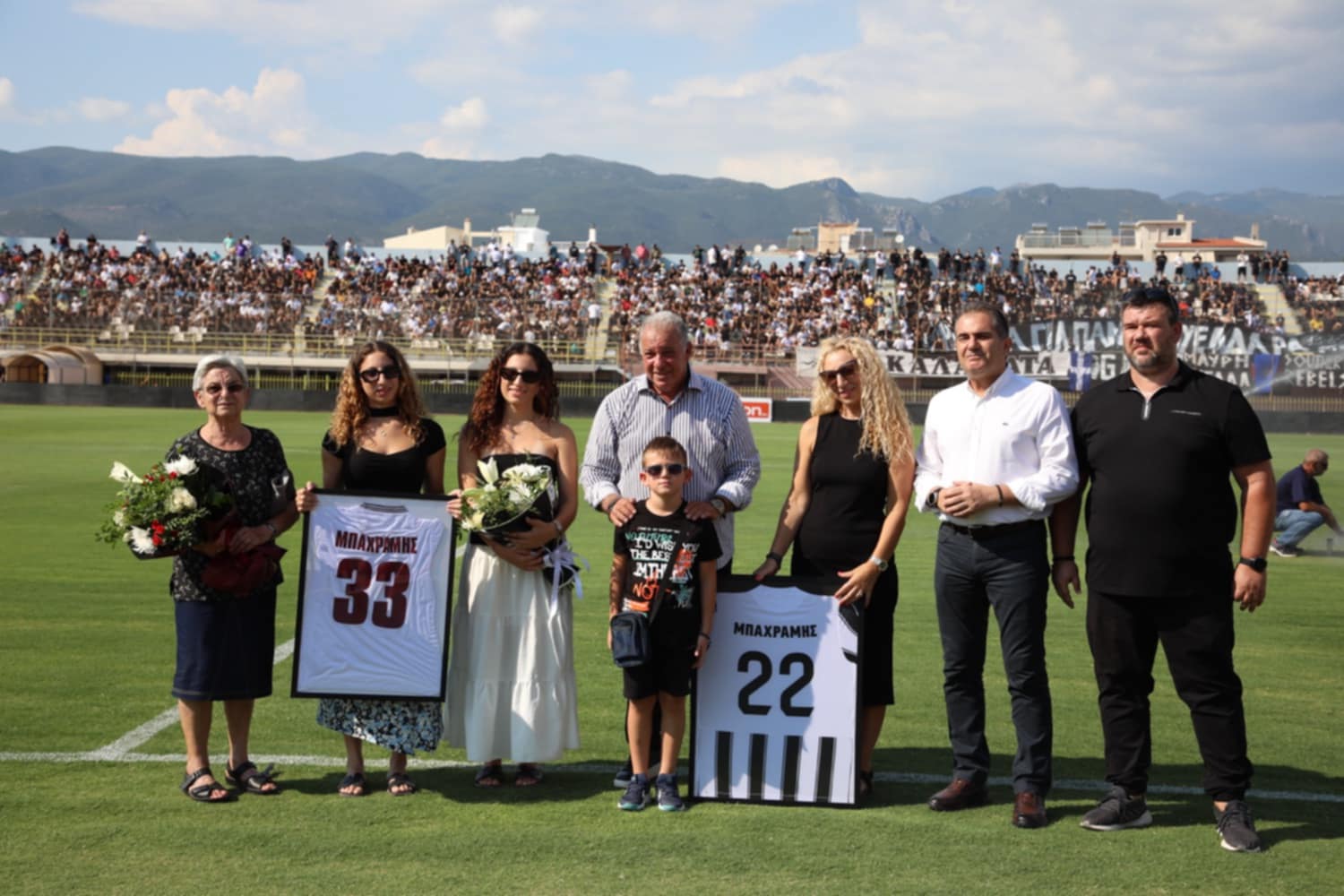 Λίγο πριν την έναρξη της αναμέτρησης Καλαμάτα – ΑΕΛ, πραγματοποιήθηκε μία συγκινητική τελετή στη μνήμη του αδικοχαμένου ποδοσφαιριστή Παναγιώτη Μπαχράμη.