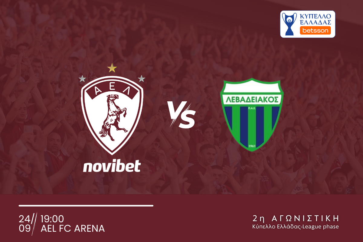 Η ΠΑΕ ΑΕΛ Novibet ενημερώνει τους φιλάθλους της ότι ξεκίνησε η διάθεση των εισιτηρίων του αγώνα της 2ης Αγωνιστικής της League Phase του Κυπέλλου Ελλάδας Betsson με αντίπαλο τον Λεβαδειακό στο AEL FC ARENA (24/09, 19:00).