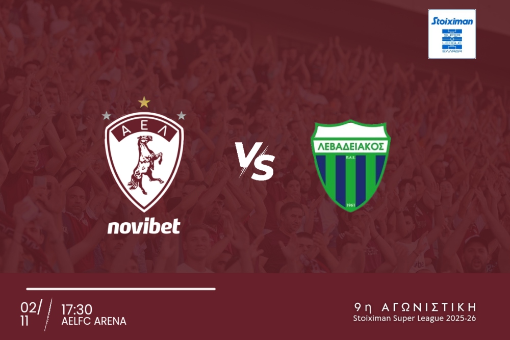 Η ΠΑΕ ΑΕΛ ενημερώνει τους φιλάθλους της ότι ξεκίνησε η διάθεση των εισιτηρίων του αγώνα της 9ης Αγωνιστικής του πρωταθλήματος Stoiximan Super League με αντίπαλο το Λεβαδειακό στο AEL FC ARENA (02/11, 17:30).